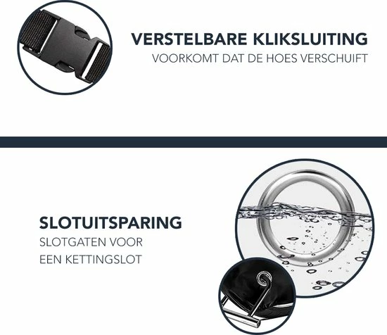 Door de elastische band en klikgespen sluit de hoes altijd mooi aan op elke soort fiets. Dit zorgt voor een mooiere pasvorm en voorkomt dat de hoes wegvliegt door de wind.