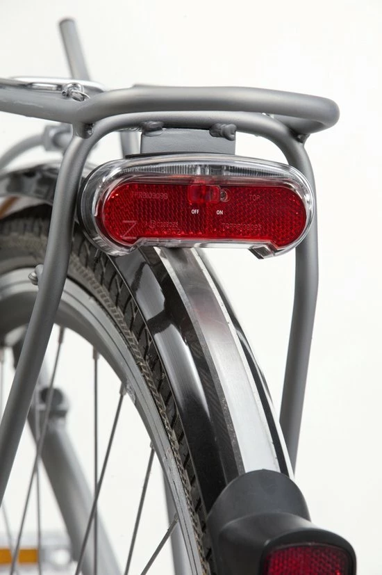 Het achterlicht heeft een makkelijk te bedienen aan/uit schakelaar. Wanneer de (meegeleverde) 2 AAA batterijen bijna op zijn, geeft het achterlicht dit aan. Hierdoor ben je altijd op tijd met vervangen en kun je weer veilig de weg op.