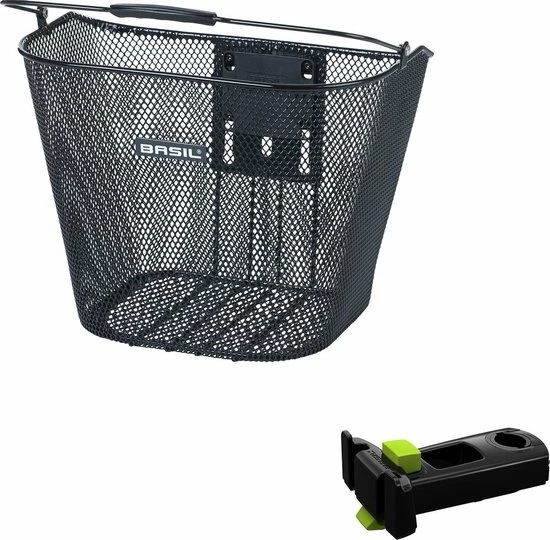 De Basil Bremen BE + BasEasy Stem Holder is een complete set die bestaat uit een ovalen stalen fietsmand in de kleur zwart en een handige houder. Deze houder is geschikt voor stuurpennen met een diameter van 22-25,4 millimeter. De afneembare fietsmand is verder licht in gewicht en neem je daarom probleemloos overal mee naartoe. Dit is onder meer handig bij het doen van een boodschap. De mand neem je comfortabel mee dankzij het hengsel. De Basil Bremen BE inclusief houder monteer je eenvoudig aan het stuur van een dames- of herenfiets.