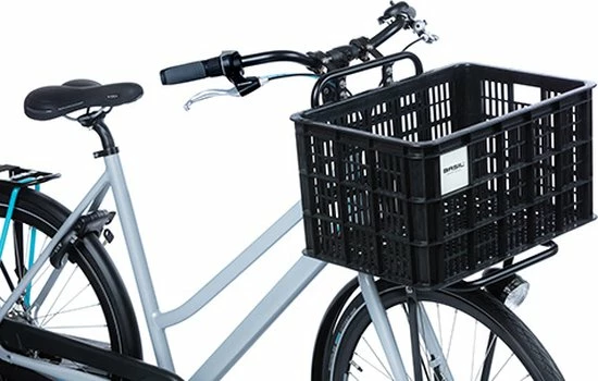 De Basil fietskrat in de maat L is een zwarte fietskrat voor op een dames- of herenfiets. De fietskrat is gemaakt van duurzaam materiaal en heeft een inhoud van 40 liter.