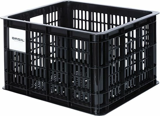 De Basil fietskrat in de maat M is een zwarte fietskrat voor op een dames- of herenfiets. De fietskrat is gemaakt van duurzaam materiaal en heeft een inhoud van 29,5 liter.