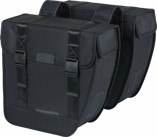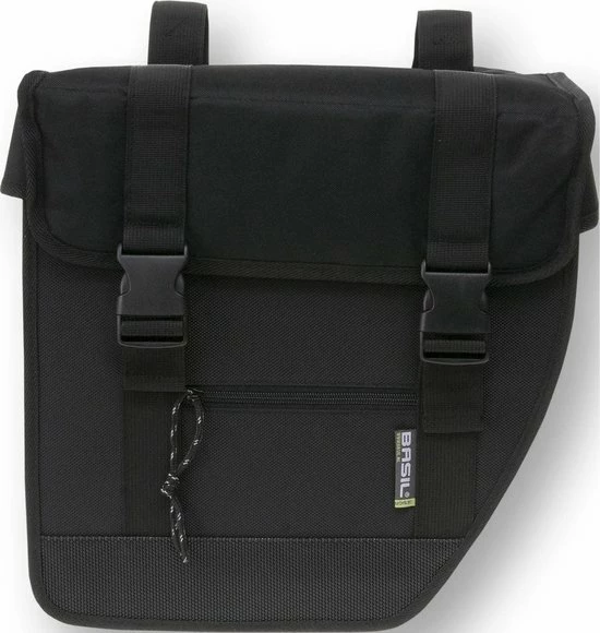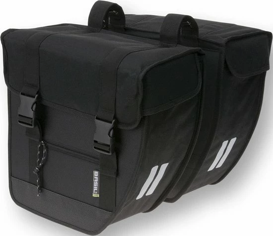 De Basil Tour is een stijlvolle dubbele fietstas met een inhoud van 28 liter. De zwarte fietstassen zijn geschikt voor zowel een dames- als herenfiets.