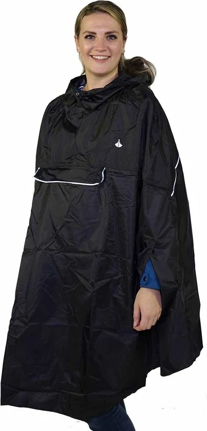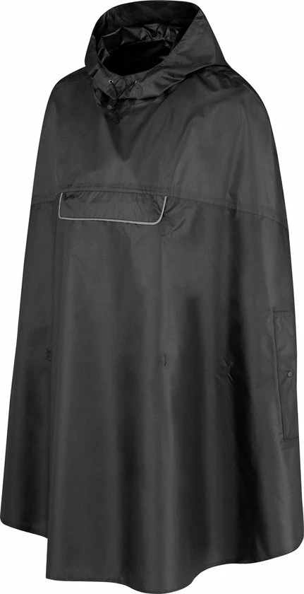Hoogwaardig nylon, afgedichte naden en de vaste capuchon beschermen je tegen regen en wind. De hoge opstaande kraag kan gesloten worden met verstelbare koordjes. De regenponcho is een snelle oplossing tegen een regenbui en houdt u goed droog op de fiets, de brommer of tijdens het wandelen. De borstzak is ook een tasje om de regenponcho in op te bergen. Zo neemt u de regencape gemakkelijk onderweg mee. Wanneer u een goede waterdichte en lange regenponcho zoekt, dan is de Haps van BJ?RNSON zeker aan te raden en hierin zult u goed droog blijven. De regencape heeft handige reflecterende details voor extra zichtbaarheid en is snel aan te trekken over de kleding. Handig zijn de twee open heupzakken en de grote zak op de borst. De regenponcho is one size fits all en is geschikt voor zowel mannen als vrouwen. Met deze regenponcho kom je droog aan op je bestemming.