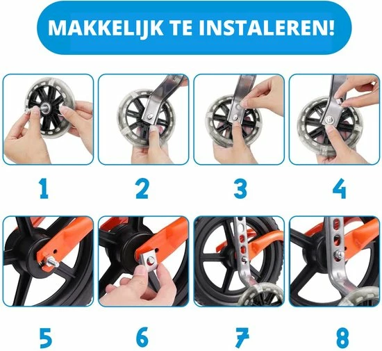 - [Eenvoudig te installeren] ? onze steunwielen zijn eenvoudig te installeren en uitgerust met verschillende accessoires. Daarom hoef je de steunwielen alleen met statieven te installeren, zodat je kinderen de fiets veilig kunnen gebruiken.