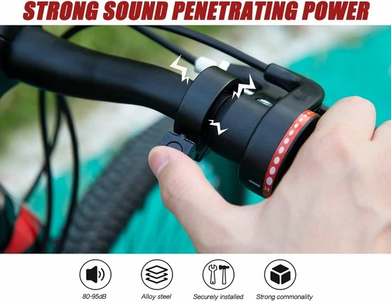 Duidelijke ringtone: Nieuwe zuivere en luide ringtones 85 – 95 dB. Het is een ideale veiligheidswaarschuwing voor mountainbikes en racefietsen.