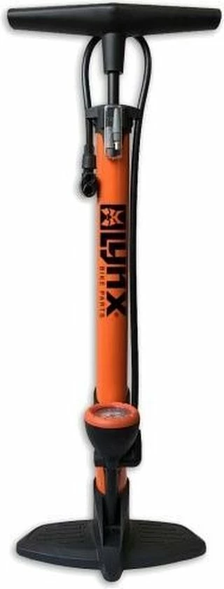 De stalen voetpomp van Lynx, met manometer tot maximaal 6 Bar (87 psi).