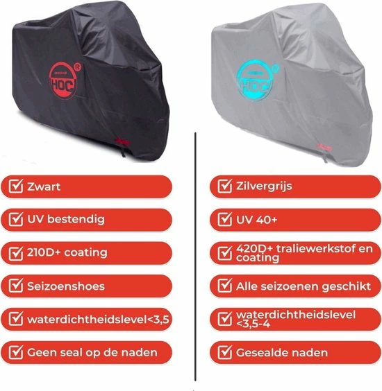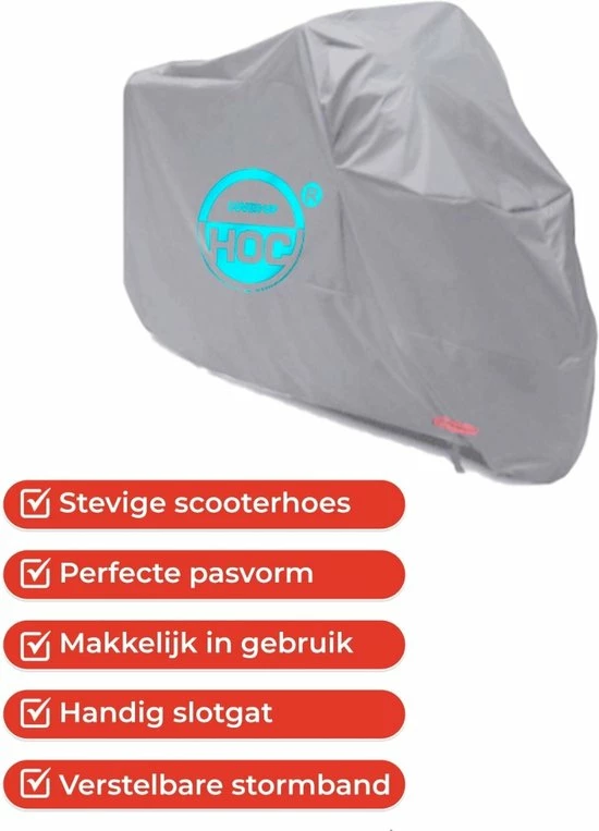 Let op! Een te grote scooterhoes hangt op de grond en een te kleine past niet. Kijk en meet! Neem de afmeting en neem zo een 5-10 cm speling. Daarnaast moet de hoes altijd zo een 10 tot 20 cm boven de grond komen. Hierdoor ventileert de hoes het best. Kom je er niet uit, neem even contact met ons op.