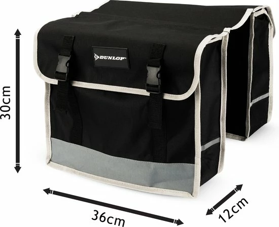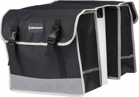 De dubbele fietstas van het merk Dunlop is vervaardigd van nylon en is waterafstotend. De tassen zijn voorzien van reflectiebanden om beter op te vallen in het verkeer. De dubbele fietstas kan eenvoudig aan de bagagedrager worden bevestigd met de klittenbandsluiting. Tevens kan hij op elke fiets met bagage drager.