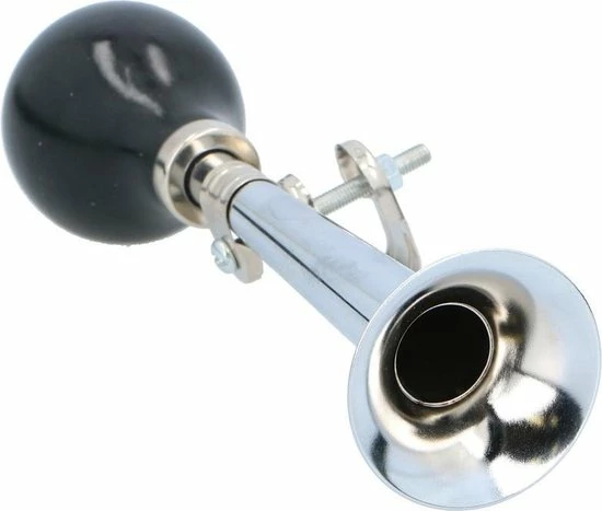 Deze fietstoeter is gemaakt van staal met een rubberen knijpgedeelte en heeft een lengte van 21 cm. De toeter is makkelijk te monteren.