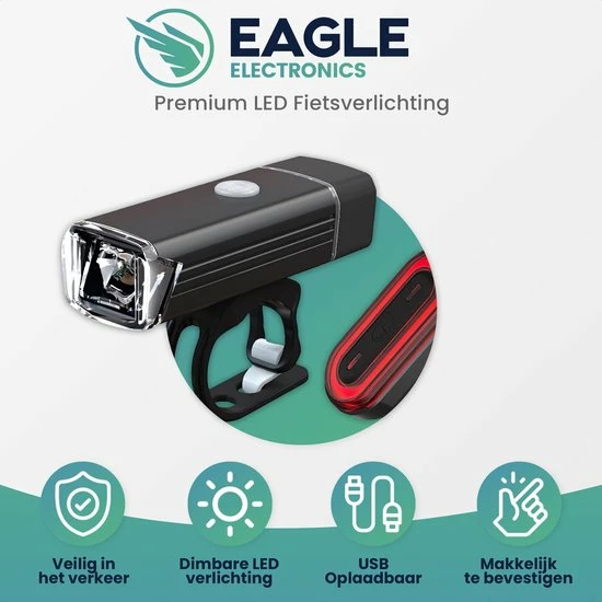 Als je de weg op gaat wil je zichtbaar zijn, zodat je veilig deel kan nemen aan het verkeer. Daar doet deze set LED-verlichting van Eagle Electronics nog een stapje bovenop, door jou meer zicht te geven in het donker. Zo heeft het krachtige voorlicht een bereik van wel 100 meter, en heeft een stralingshoek van 120 graden, waardoor niks jou meer ontgaat. Fiets je door de bebouwde kom en heb je geen fel licht nodig? Met ??n druk op de knop schakel je naar de gedimde stand, wel zo fijn voor jouw medeweggebruikers.