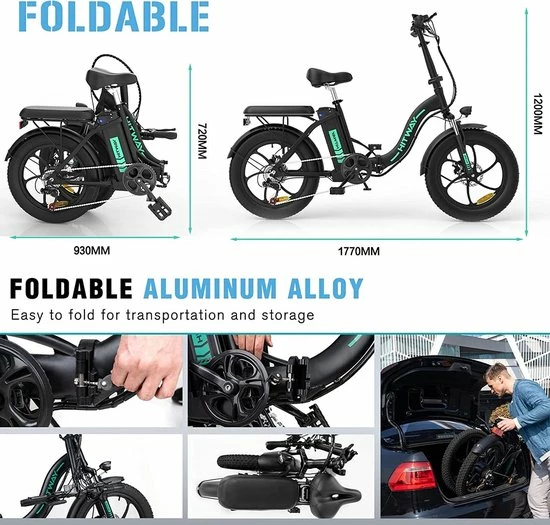 Hitway BK6 Elektrische Fiets – Opvouwbare E-bike – 20 Inch Fat Tire – 250W Motor – 11,2Ah – Zwart/Groen