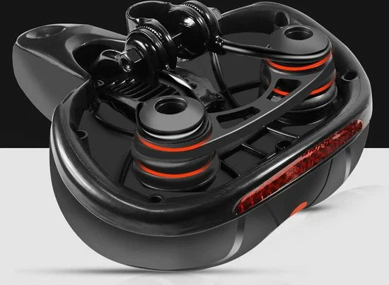 iBright fietszadel bestaat uit hoogwaardig leer en zeer elastische Gelpads, ademend en comfortabel ontwikkeld voor prettige rijervaring. Met dubbele schokbestendige veren die bestaat uit een effectieve schokveer + zeer elastische schokdempers .
