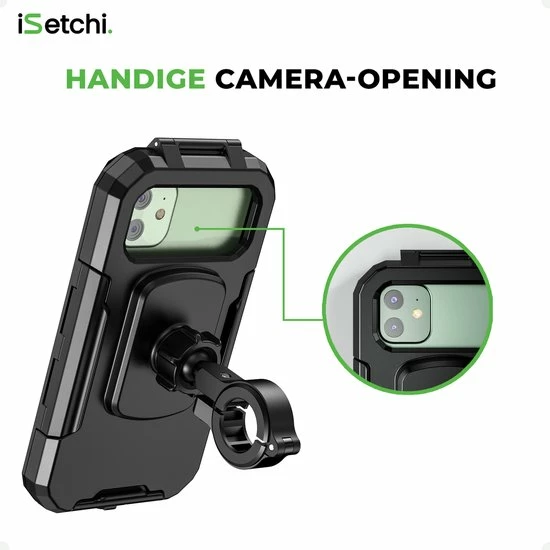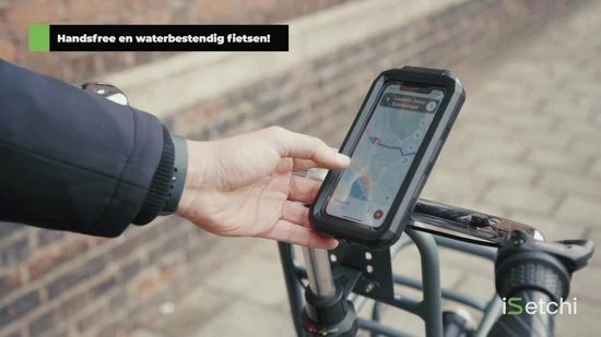 Handsfree fietsen en navigeren met Google Maps, Strava of andere handige fietsroute apps? Veilig door het verkeer en een bekeuring van 140 euro voorkomen? Bevestig je telefoon op deze iSetchi waterdichte telefoonhouder, bepaal de kijkhoek en fiets veilig door het verkeer!