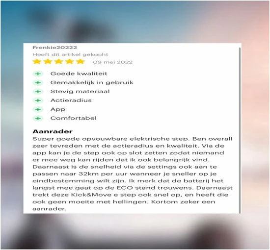 Met je elektrische step onderweg zijn, maar niet genoeg batterij hebben om terug te komen is geen pleziertje. Hierom heeft Kick&Move een extra grote batterij ingebouwd met een bereik van 25 tot 35 km (afhankelijk van gewicht en snelheid). Waardoor al je bestemmingen binnen de 15 km makkelijk te bereiken zijn. Bovendien met zijn vouwbare ontwerp neem je hem ook makkelijk mee in de trein of kofferbak bijvoorbeeld, voor de grotere afstanden.
