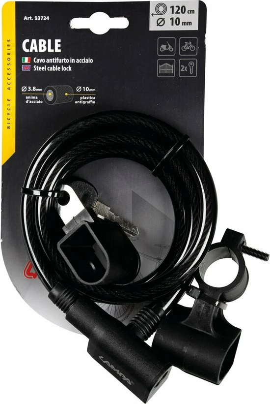 De lengte van dit fietsslot is 120 centimeter. Lang genoeg om uw fiets waar dan ook aan vast te maken.