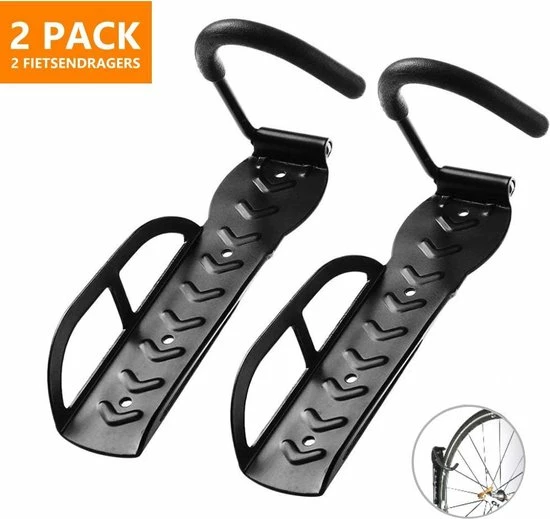 Je kunt ervoor kiezen om 2 fietsen met deze set op te hangen, 1 haak is ruim voldoende voor 1 fiets. Het is echter ook mogelijk om beide muurbeugels onder elkaar op te hangen, hierdoor raakt de band van de fiets de muur niet zit de fiets op 2 plekken vast.