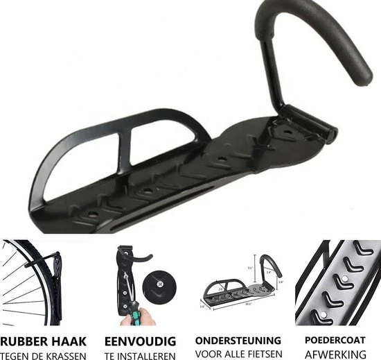 Je wilt natuurlijk niet dat jouw prachtige fiets bekrast wordt of op een andere manier beschadigd raakt. Met dit fiets ophangsysteem zorg je ervoor dat jouw fiets veilig aan de muur hangt, ver weg van anderen die erlangs lopen en per ongeluk de fiets beschadigen. Aan de ophanghaak zit een stevige rubberen rand vast, deze zorgt ervoor dat jij jouw fiets zonder enige vorm van krassen of beschadigingen kunt ophangen. De velgen van de fiets zullen net zo mooi zijn als ervoor!