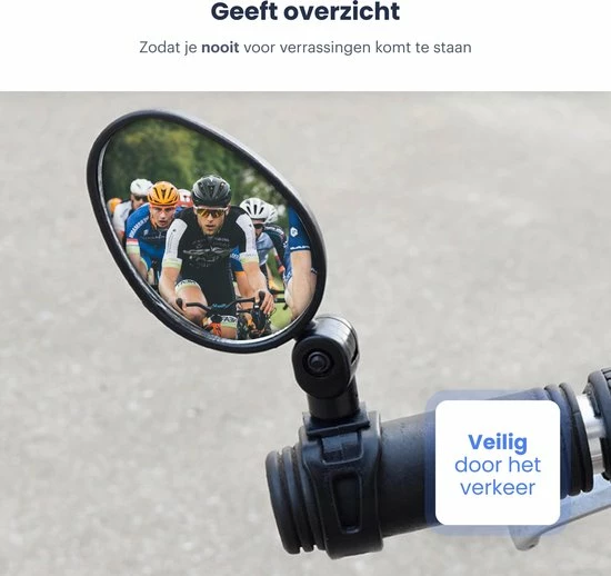 ? Overzicht – Deze draaibare Fietsspiegel voor de e-bike en normale fiets zorgt voor beter overzicht in iedere verkeerssituatie. Voortaan kun je als fietser sneller anticiperen op naderende gevaren en kom je een stuk minder snel in onverwachte situaties terecht.