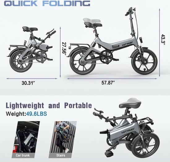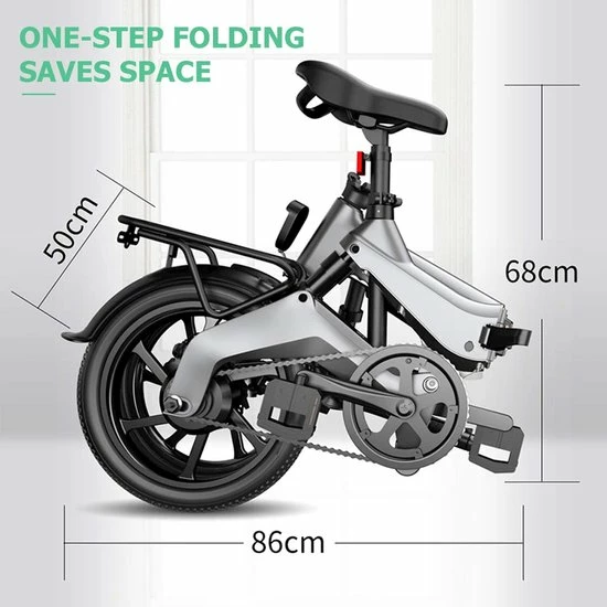 – De fiets is opvouwbaar en kan gemakkelijk vervoerd worden