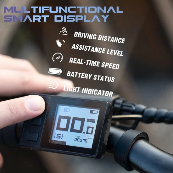 De fiets is uitgerust met een dashboard op het stuur waarop u zowel de kilometerstand van de huidige rit als de totaal afgelegde afstand kan zien. Ook kunt u er de snelheid en het batterijniveau op aflezen. Verder worden er op het dashboard foutmeldingen weergegeven, mocht er zich een systeemfout voordoen.