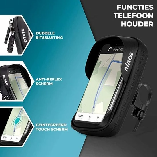 Ben jij op zoek naar een waterdichte telefoonhouder voor op de fiets ? Met de Nince telefoonhouder tover jij je smartphone snel en eenvoudig om in een handige fietscomputer. Ideaal voor het navigeren op de fiets of het bijhouden van je fietsprestaties.Voorkom boetes en fiets veilig door het verkeer!