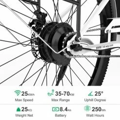 HITWAY Elektrische Fiets, 26 Inch, 250 W Motor, Li-batterij 36 V, 8.4 Ah, Tot 35-70 Km Wit Blauw