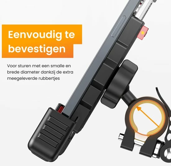 ? Geschikt voor elk formaat stuur, dankzij extra rubberen strips
