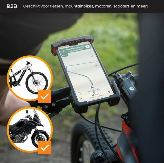 Dankzij het unieke “Safety Lock” bevestigingssysteem zit jouw telefoon altijd beschermd in de gsm houder. Hierdoor is deze fietshouder ideaal tijdens een normale fietsrit, maar ook tijdens het mountainbiken, scooteren, motorrijden en meer! De fiets telefoonhouder is ook zeer eenvoudig te monteren aan het stuur. Hier is GEEN gereedschap voor nodig, wat de montage extra makkelijk maakt. Door het gebruik van de beste materialen blijft de fiets smartphone houder stevig vastzitten aan jouw stuur. Dankzij de extra meegeleverde rubbertjes is de bevestiging geschikt voor zowel de dikke als dunne sturen. Hierdoor kun je altijd zorgeloos en handsfree navigeren wanneer je maar wilt!