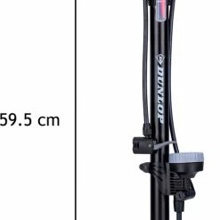 Dunlop Staande Fietspomp Pro Uitvoering – Analoge Drukmeter – Dubbele Ventielkop – Zwart