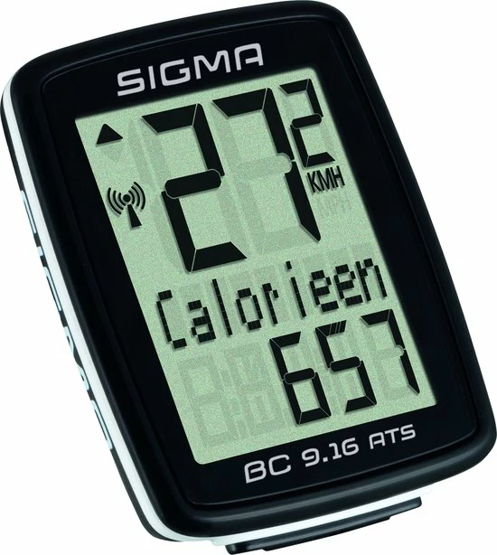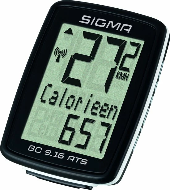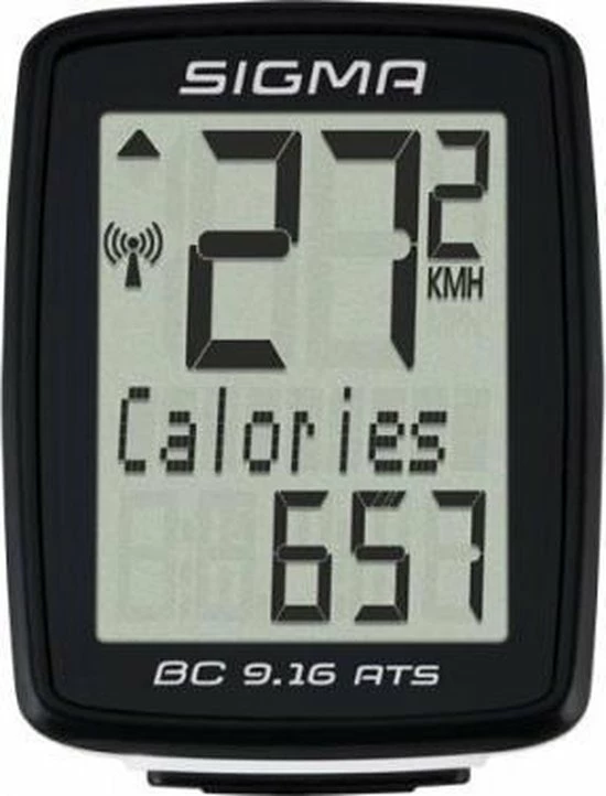 De Sigma BC 9.16 fietscomputer blinkt uit door de eenvoud en kan dankzij de ATS techniek draadloos diverse gegevens, waaronder snelheid en afstand, overdragen. Het display ziet er zeer sportief uit en zal zeker niet misstaan op jouw racefiets of mountainbike! Naast de diverse basisfuncties kan deze veelzijdige fietscomputer ook het aantal verbruikte calorie?n en de maximale snelheid weergeven. Ook een automatische start- en stopfunctie is aanwezig. Met het meegeleverde bevestigingsmateriaal is de computer snel en gemakkelijk zonder gereedschap te monteren!