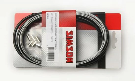 De Simson Remkabelset universeel zwart is een complete remkabelset. De set bestaat uit een zwarte buitenkabel en een gegalvaniseerde binnenkabel van 1.70 meter met een universeleton- en peernippel. De set wordt geleverd inclusief inbussleutel en bevestigingsmateriaal. Knip de nippel die niet van toepassing is af. Steek de binnenkabel door de buitenkabel en sluit de binnenkabel aan op de rem. Stel de rem af en knip de binnenkabel ? 2 cm voorbij de schroefnippel af. Omdat de remkabelset universeel is, kunnen er onderdelen overblijven. Productspecificaties: Universeel, compleet, zwart 1,70 meter met ton- en peernippel Gegalvaniseerde kabel