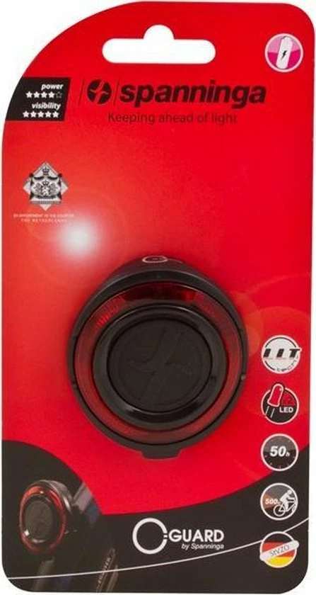 Opmerkelijk design en Opmerkelijke prestaties! Dat is waar het O-Guard batterij achterlicht van Spanninga voor staat. Hij heeft 2 zuinige LED?s en geeft hiermee een licht opbrengst van 4 Candela. De O-Guard is geschikt voor bevestiging op het spatbord van je fiets.