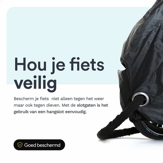 ? Opvouwbaar – Of je nu de fiets naar werk pakt of graag op fietsvakantie gaat, de hoes kan overal mee naar toe. Vouw hem op, en stop hem in de meegeleverde opbergzak; zo ben je altijd goed voorbereid!