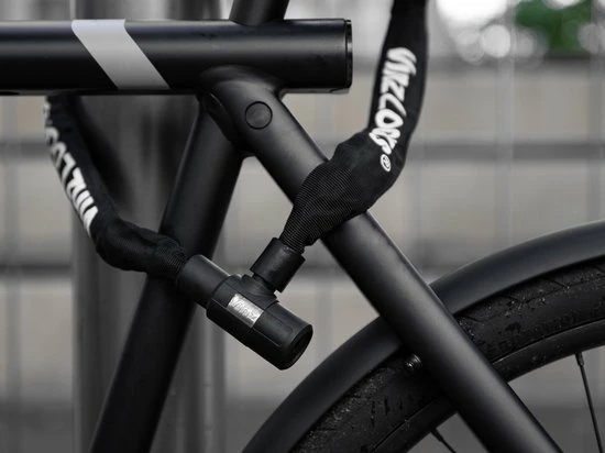 De 23mm dikke ketting is gemaakt van meerdere kleine schakels met een schakeldikte van 6mm, waardoor de ketting erg flexibel is en makkelijk om een paal of je zadel kan heen worden geslagen.